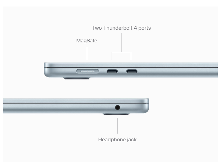 Ports: Two Thunderbolt 4 ports, MagSafe 3 charging port