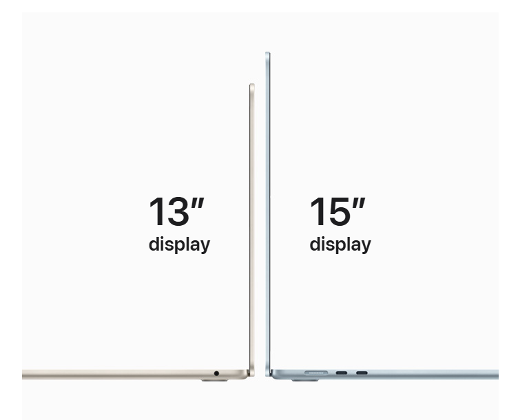 Portability: Despite its larger screen, the MacBook Air 15” maintains a lightweight design, making it easy to carry without sacrificing performance.